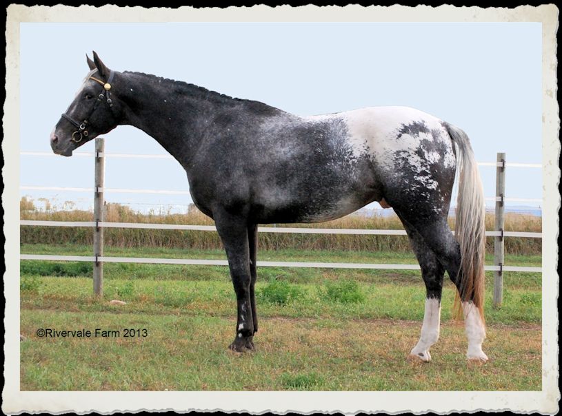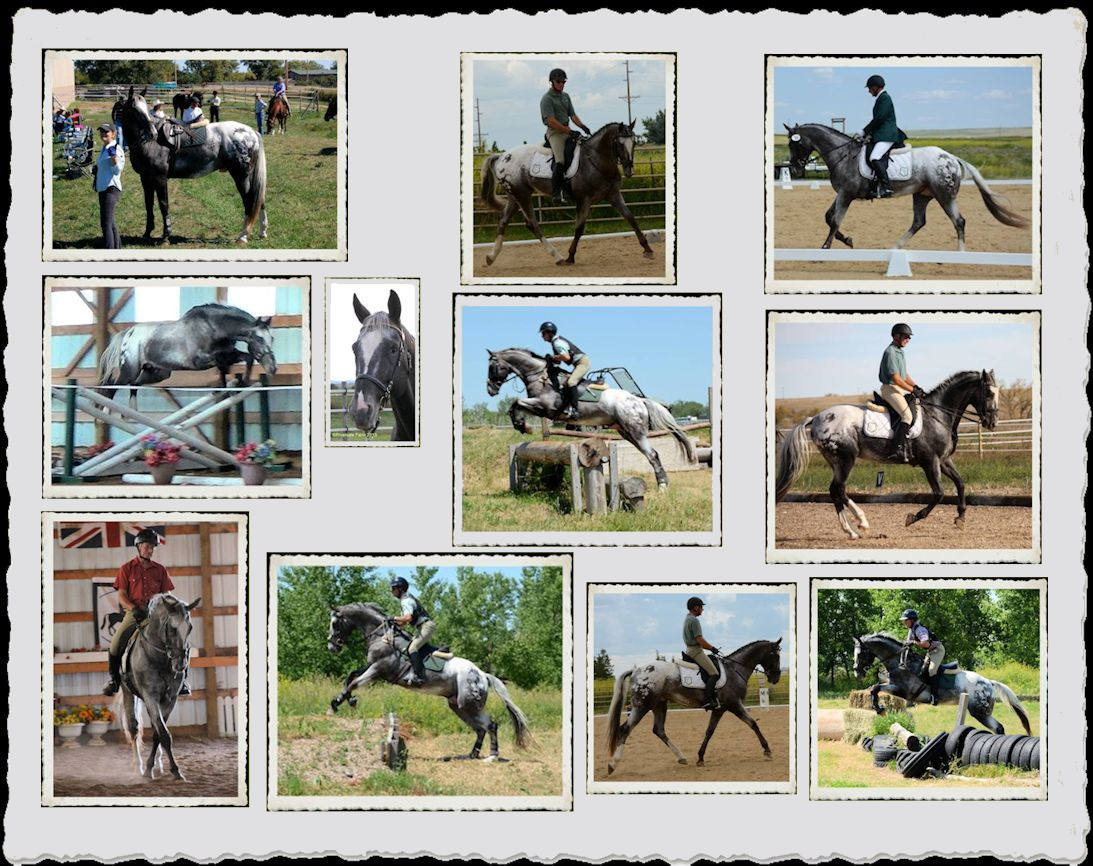 Asher is not your "typical" Appaloosa. He wears a size 2 shoe and is a big, substantial horse with a pretty head, Warmblood movement and a beautiful tail. Asher has no modern AQHA horses in his pedigree, he is 50% Foundation Appaloosa and Throughbred. He is color tested LP/ LP Ee Aa meaning he can sire black, bay, or chestnut, and will always produce Appaloosa characteristics. He is also clean of genetic diseases. Asher suffered a life threatening fence injury as a young horse. In spite of this, he has successfully competed in Dressage Shows and Horse Trials. He has proven to be a well mannered gentleman in mixed company and is an easy stallion to handle.