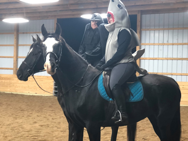 Dirk and Kristine Sommers - Holloween fun! Dirk, the headless horseman, is riding RF Let's Dance, Lion King X Willowbez X Bezalla ox Kristine, the shark is riding, RF LePhantom, Lion King X Fancy That PCH X For Paragon. Both horses are also getting good ribbons in the Hunters and Dirk and "Max" are starting in the Jumpers.